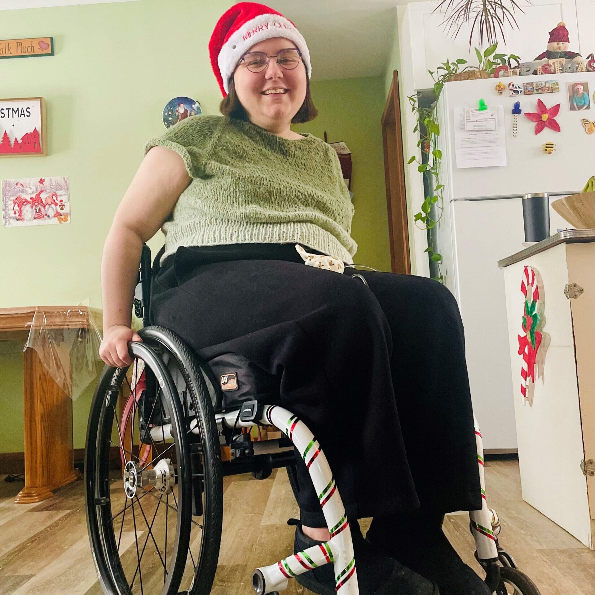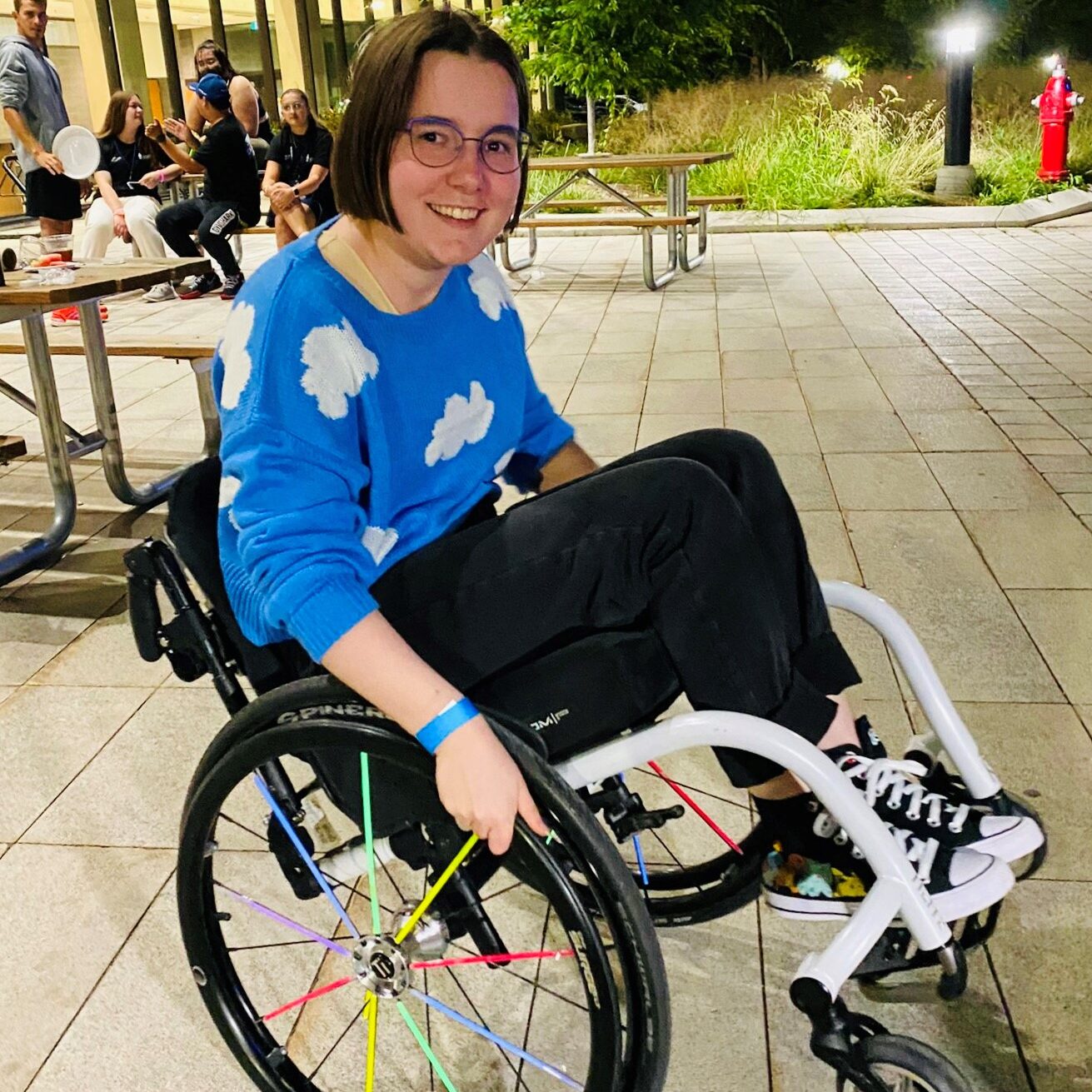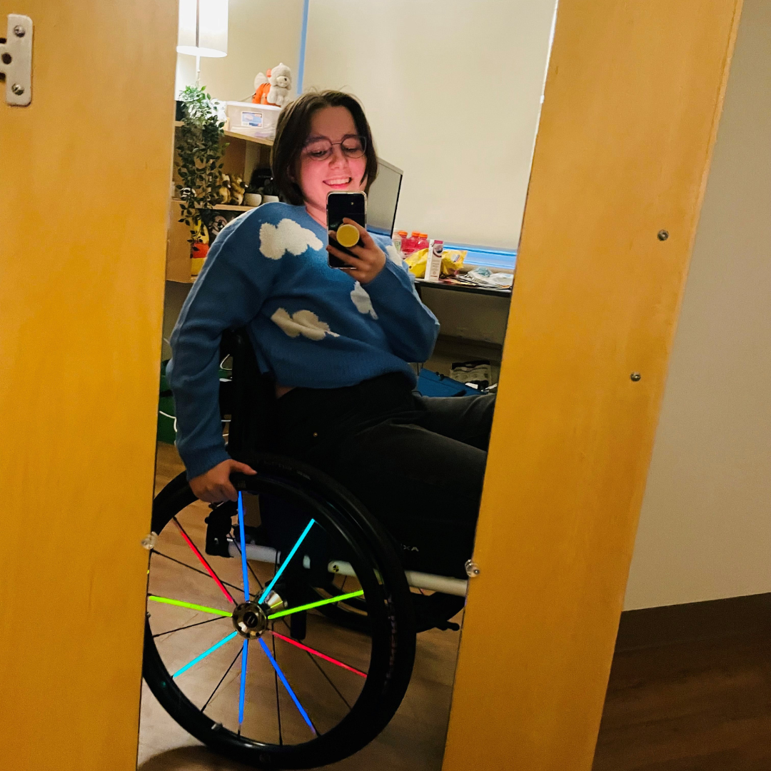 Motion is excited to introduce our newest client ambassador, Callie! Callie is a 26-year-old graduate student in Critical Disability Studies, disability advocate, and wheelchair user who turned a sudden onset of chronic illness into a powerful source of purpose. Drawing from lived experience, Callie’s work centres on accessibility, radical accommodation, and universal design, with a particular focus on making academia more inclusive for people with complex support needs. Through advocacy, scholarship, and storytelling, she challenges harmful assumptions about disability, shares her experience and the impacts of not having a “neat” diagnosis, and reclaims mobility as a source of independence, joy, and possibility.